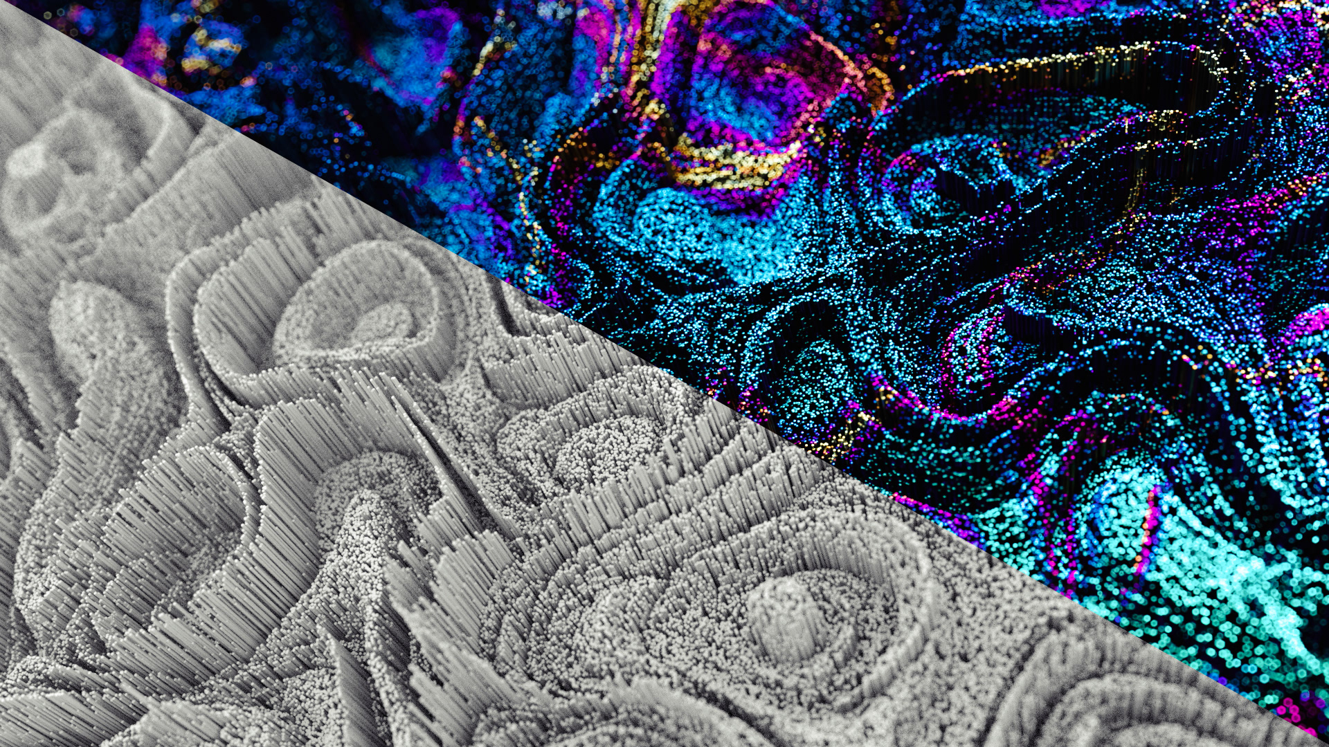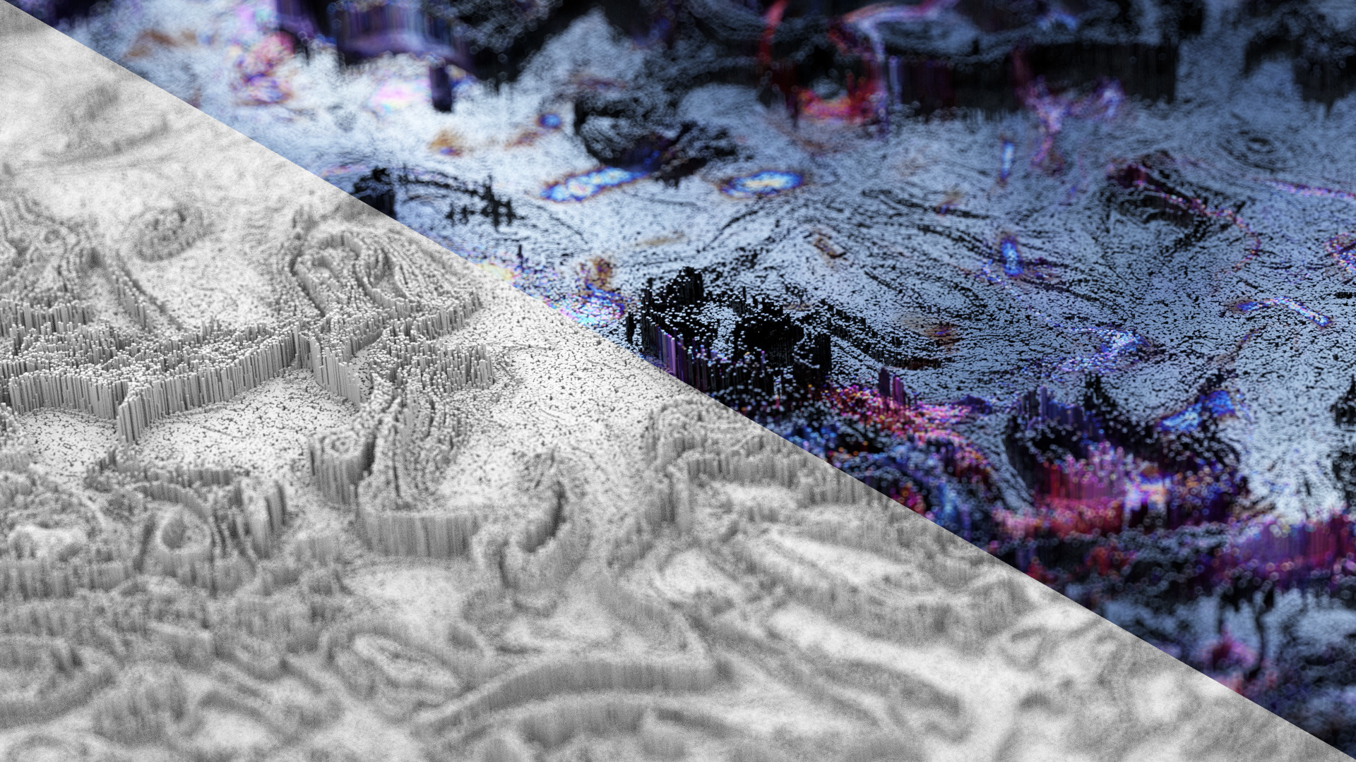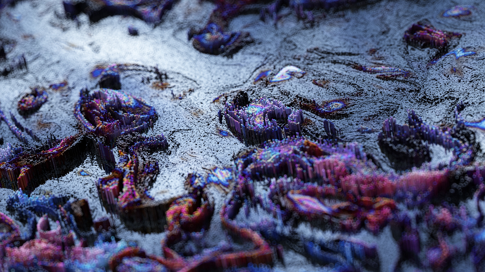 This series I was looking at the use of octane scatter to generate animated landscapes made up of millions of elements.
